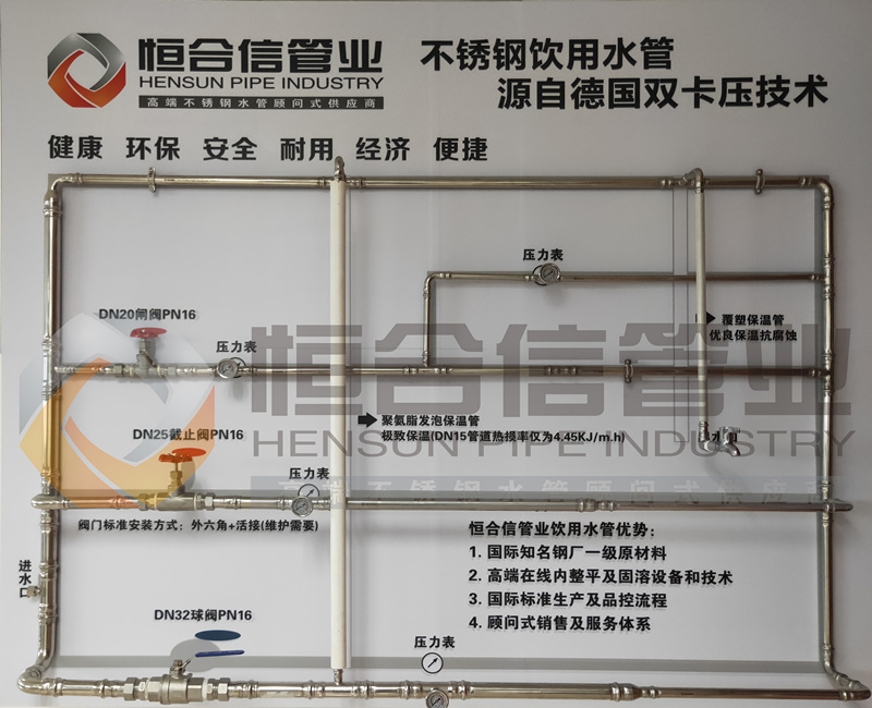 不銹鋼水管也可用于家裝水管暖通 不銹鋼水管是目前水管中最高端的水管,不銹鋼水管在-50℃—150℃的溫度范圍內(nèi)能安全使用,因此也可以用于用于家裝水管暖通,這點(diǎn)也是一般管道無(wú)法比擬的。強(qiáng)度高不會(huì)爆管,和現(xiàn)在常用的PPR管相比,不銹鋼管在加熱時(shí)不會(huì)產(chǎn)生塑化劑,其有效使用壽命可達(dá)100年。在歐美國(guó)家已是主要用管。